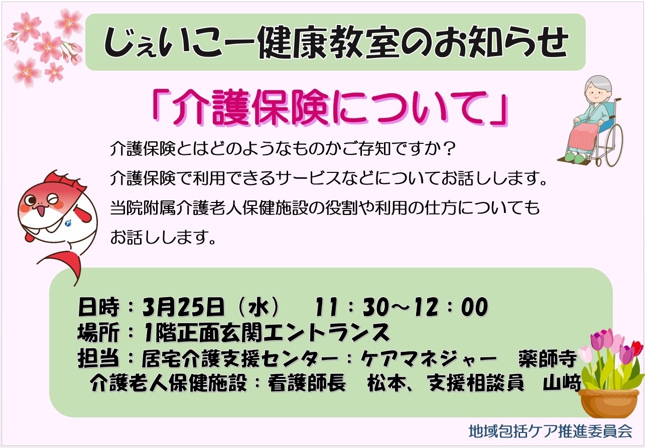 じぇいこー健康教室のお知らせ(3/25開催・介護保険について)